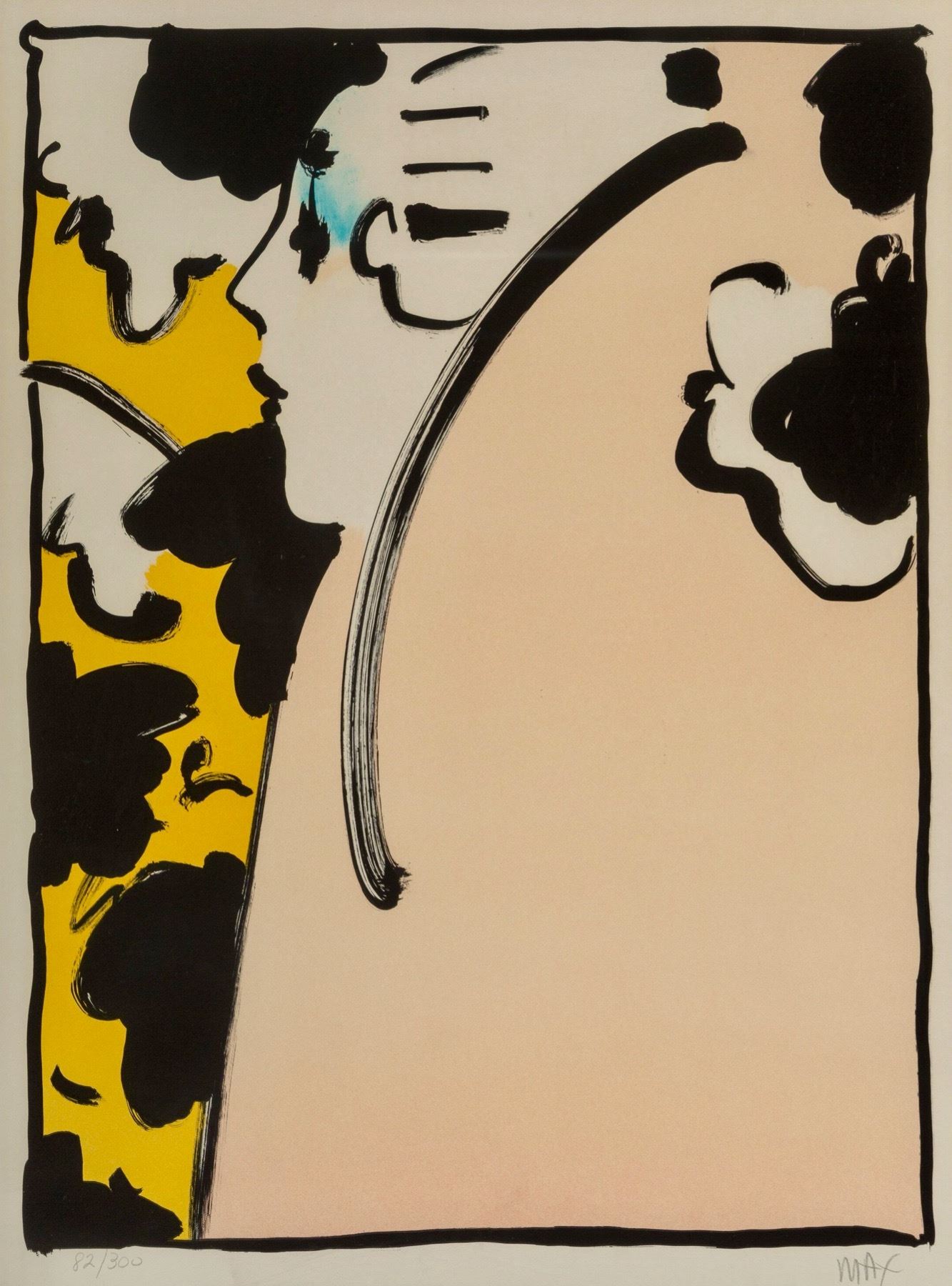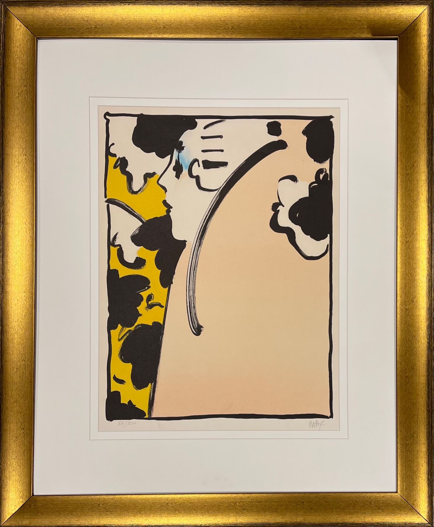 Peter Max (1937-) Original vintage lithograph, "Peach Lady" 1970. Hand signed in pencil, numbered 82/300 bottom left. Sheet 26 x 20 inches, framed 40 x 32.5 inches.