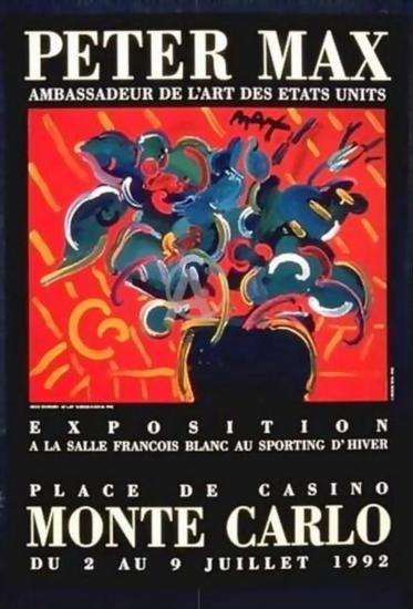 THIS AUCTION IS FOR ALOT PACK OF 5 IDENTICAL PRINTS OF THIS ITEM!FABULOUS MONTE CARLO BY PETER MAX POSTER PRINTHIGHEST EXCELLENT QUALITY ORIGINAL FINE ART POSTER PRINTBY ARTIST PETER MAX!PETER MAX MONTE CARTLO POSTER PRINT. This is your opportunity to own a fabulous rare original Peter Max poster print. For a limited time we are offering the beautiful bold vintage Exhibition Peter max poster that was expertly produced by one of the finest printers in Europe for the artists Peter Max sojourn with Prince Ranier and Prince Albert in 1992. Highly desirable for art collectors!ARTIST PETER MAX (Born: 1937)German born American artist, Peter Max is best known for his fantastically colorful images and exciting exuberant style. Pop artist Max, like his contemporary Andy Warhol, had created his own artistic force with iconic figures and has captured the faces of the Statue of Liberty, the Mona Lisa, Mick Jagger and George Washington in his one of a king Technicolor style. This acclaimed artist?s work is also held in prestigious museum collections around the world.Born in Berlin, Peter lived in China, as a child and traveled to India, Africa, and Israel and Paris, until his family moved to the U.S. Trained at the Art Students League, Pratt Institute, and the School of Visual Arts in New York. When he left art school in the 1960s he began producing, "cosmic imagery? that catapulted him to prominence and garnered him the cover story in Life magazine.Max is noted for his surging graphic designs in bright, vibrating colors while incorporating psychedelic and celestial motifs. Max is a creative and prolific artist who has worked with acrylics, oils, water colors, pastels, charcoal, etchings, engravings, lithographs, serigraphs, silk screens, sculpture and graphics. Maxs Cosmic '60s art Pop imagery captured the imagination of an entire generation and catapulted the young artist to fame and fortune. Max is a painter for four former U.S. Presidents Carter, Ford, Bush and Reagan and created posters for Bill Clinton's inauguration.Max has had numerous International museum shows, and gallery shows worldwide. His works appear in the prominent collections of many major museums.His trademark artworks have achieved international fame.PETER MAX LIMITED EDITION LITHOGRAPH!We Ship Internationally. Please contact us for details.