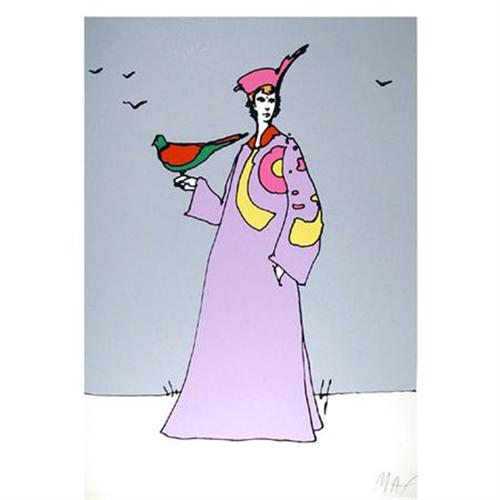 Peter Max was born in Berlin, but spent the first nine years of his life in China and one year in Tibet. His family then traveled to Africa, Israel, Europe, and finally settled in the United States. In New York Max studied at the Art Students League, Pratt Institute, and the School of Visual Arts. After completing his studies he opened a design studio and in the next few years won more than sixty-five awards for product, fashion, food, book, and poster designs. In 1964 he closed the studio to go into "creative retreat." It was then that he began making the colorful, mind-expanding silkscreens which are his hallmark. After Max's second retreat, from 1972 until 1976, he "reappeared" with a book of fifty paintings, in honor of each state, dedicated to the Bicentennial. Max has had approximately forty museum shows internationally, set up under the auspices of the Smithsonian Institution, and more than fifty gallery shows worldwide. His works appear in the prominent collections of many museums, including the Museum of Modern Art in New York.