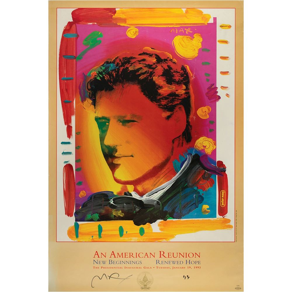 Color 24 x 36 poster for the 1993 Presidential Inaugural Gala honoring Bill Clinton, signed in black felt tip by the artist, "Max, 93." Rolled and in very good to fine condition, with some scattered creases down the right side.
