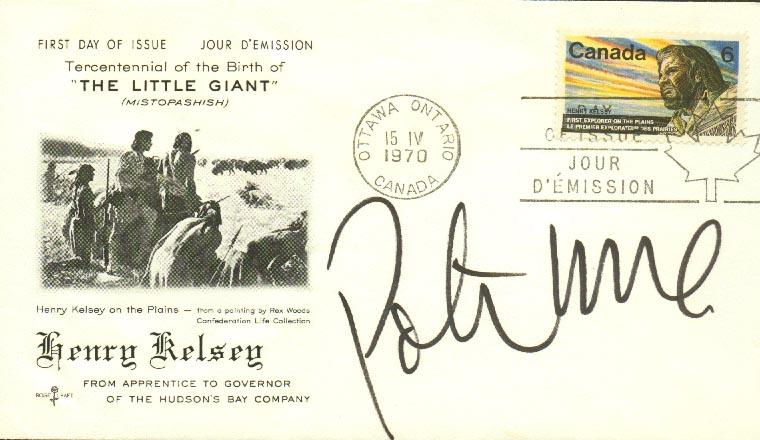 Peter Max. SFDC. 6 1/2" x 3 3/4". n.p. n.d. A Canadian first day cover signed by Peter Max in black ink. It is in choice condition.