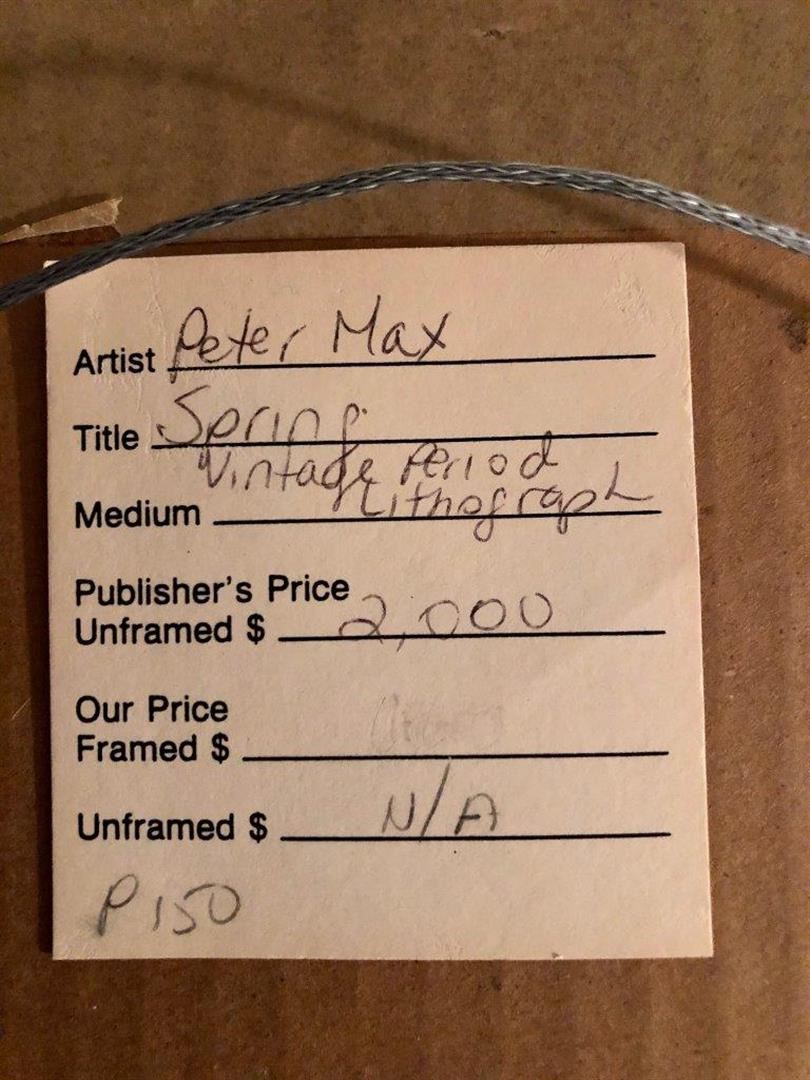 One Peter Max "Spring" vintage litho pencil signed. Litho on paper 1981