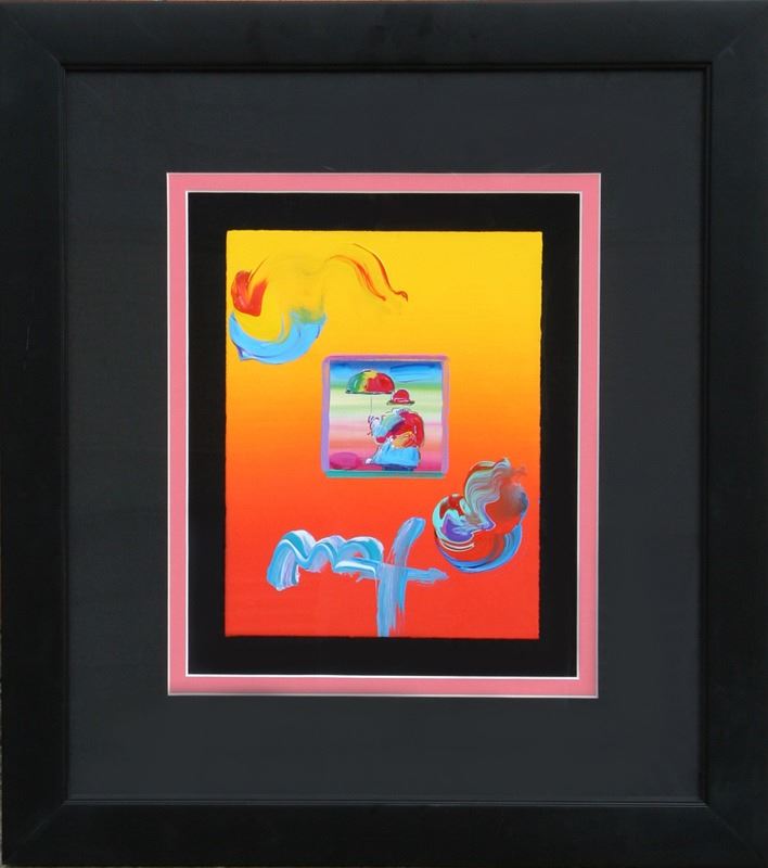 Peter Max, Umbrella Man, Acrylic and Collage Painting