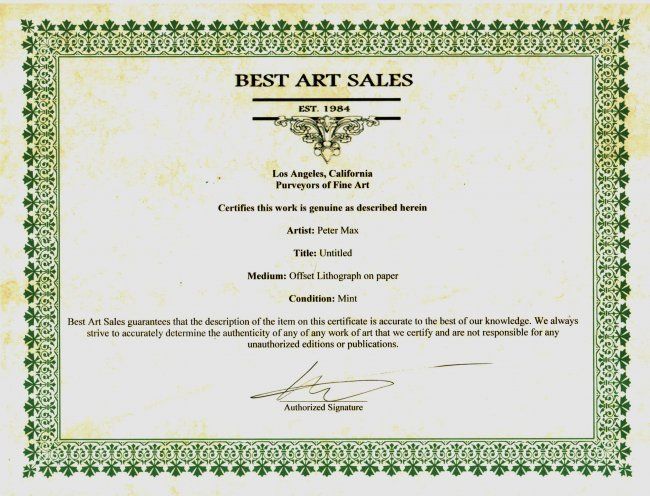 Peter Max "Untitled" Offset Lithograph on Paper. Frame Size: 15" x 18.5" Image Size: 8.5" x 12" comes with COA and framed W132