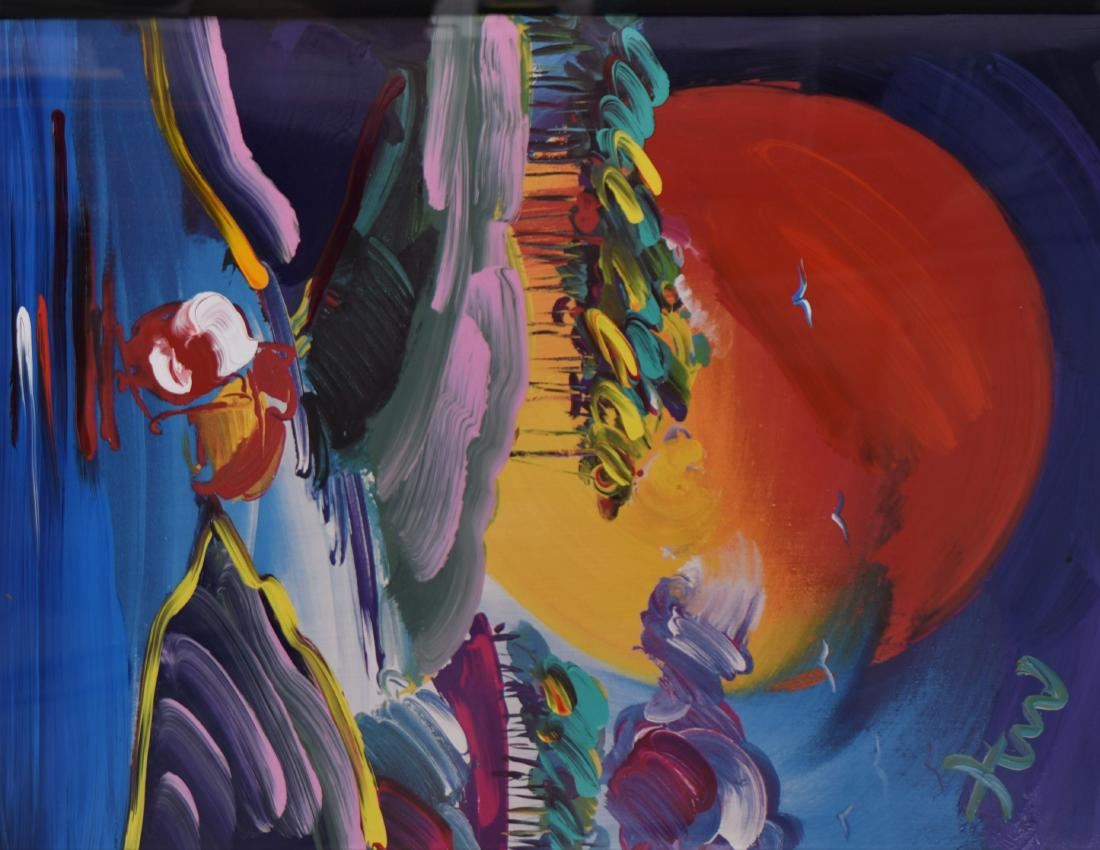 Peter Max, "Without Borders" Mixed Media Painting With Acrylic And Color Lithography On Paper, 2006. COA# 184296.0254 Certificate Of Authenticity Issued By Park West Delaware. Size 49.5 inches x 37.5 inches. Estimated less than 50 yrs old. Contemporary art is art produced at the present period in time. Contemporary art includes, and develops from, postmodern art, which is itself a successor to modern art. (Wikipedia) (Photos Represent The Lot Condition.)