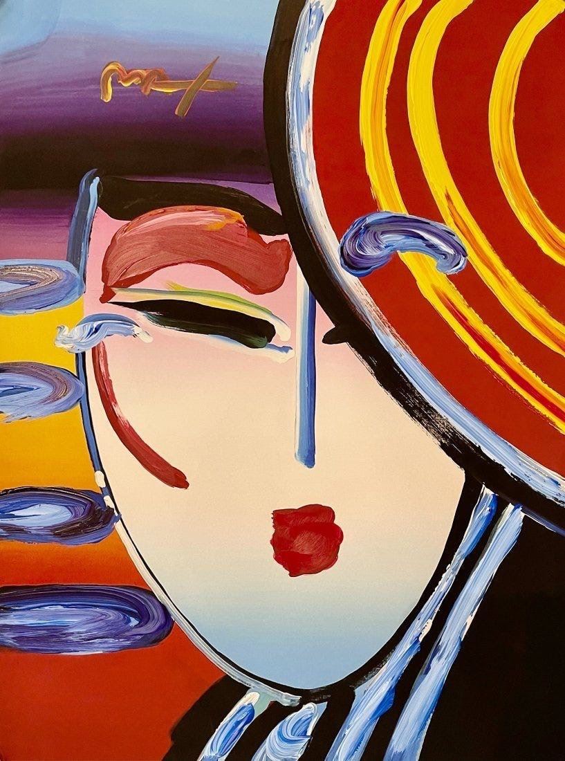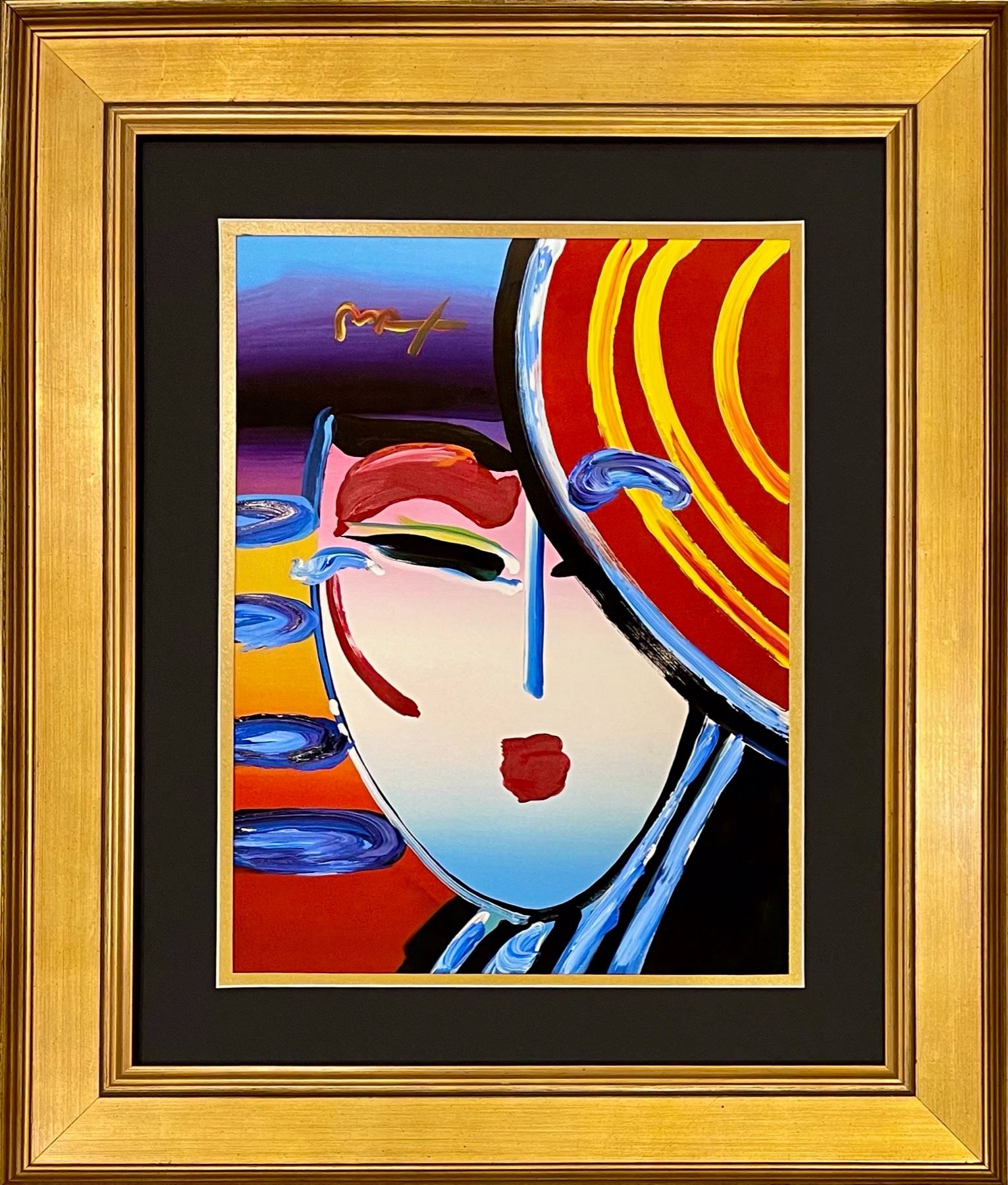 Peter Max (1937-) Mixed Media, acrylic on lithography, "Deco Lady." 1996, signed in acrylic. Sheet 18.5 x 14 inches, new frame 29.5 x 25 inches. Excellent condition, sheet and frame. Peter Max registration number, stamp with date on verso.