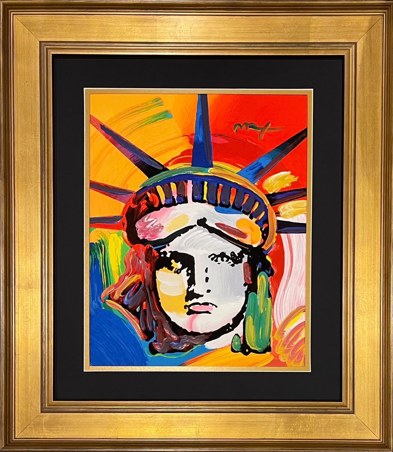 Peter Max (1937-) Mixed Media, acrylic on lithography, "Liberty Head." 2006, signed in acrylic. Sheet 18 x 14.5 inches (by sight), framed 29 x 25 inches. Sheet in excellent condition, the frame is new. Peter Max registration number, stamp with date on verso.
