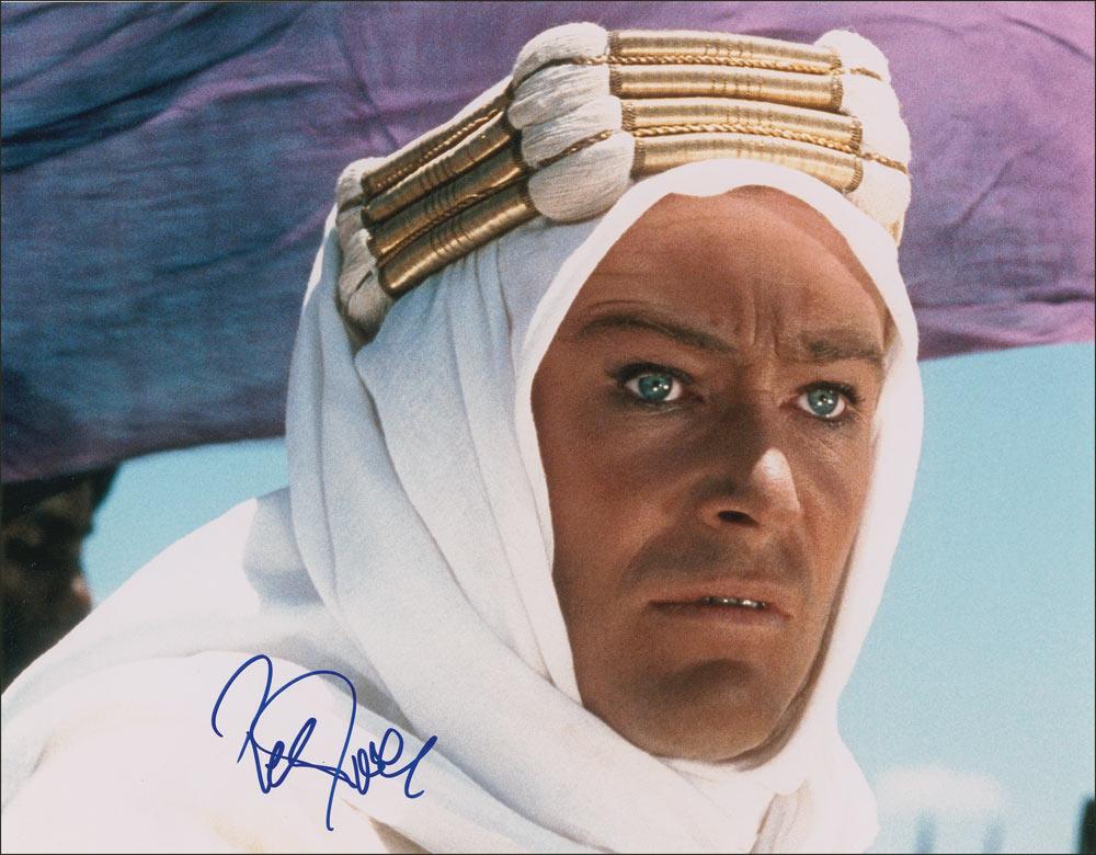 Color satin-finish 14 x 11 photo from Lawrence of Arabia, signed in blue felt tip. In very fine condition.