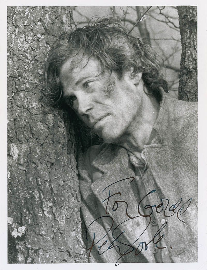 Glossy 6.5 x 8.5 photo of O’Toole in Rogue Male, signed and inscribed in fountain pen. In fine condition, with trivial corner tip creasing and scattered surface marks.