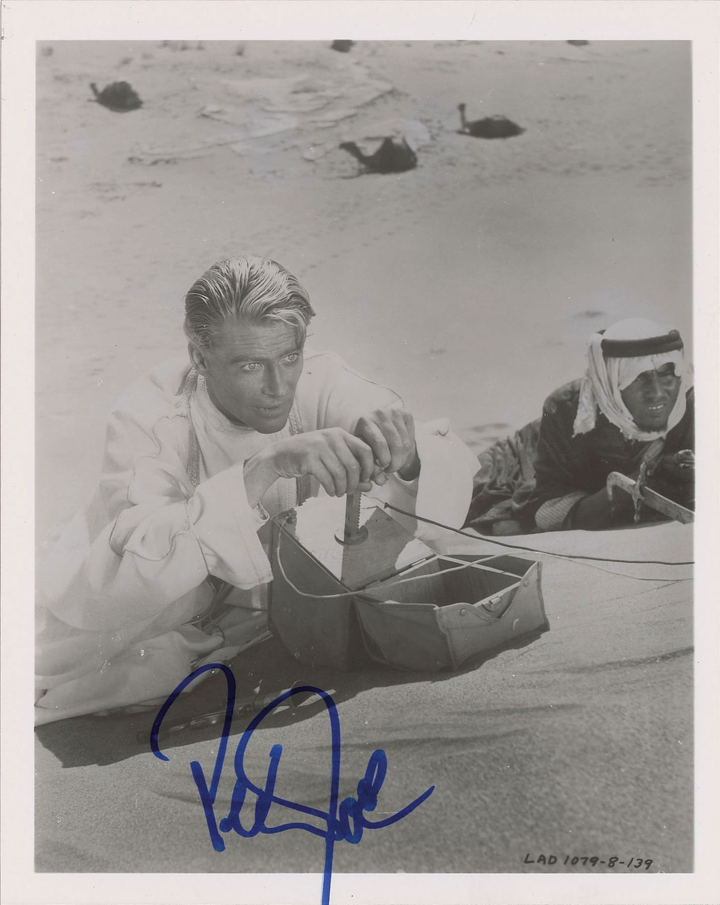 Glossy 8 x 10 photo of O'Toole as T. E. Lawrence from the epic 1962 film Lawrence of Arabia, signed in blue felt tip. In fine condition.