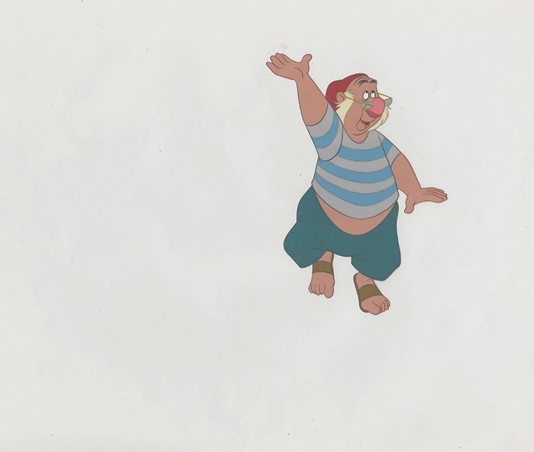 (Disney, 1953) An original animation production cel used in the creation of Disney's animated feature film "Peter Pan". This cel features Smee, who was animated in several scenes by Rolly Crump. The cel measures 12.5"x16" and is in very good condition.