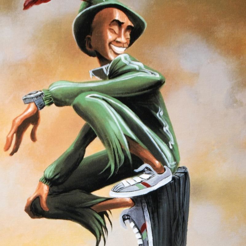 Combining his passions for music and art, David Garibaldi creates visual poetry! "Peter Pan" is a limited edition giclee on stretched canvas, E numbered and bearing the artist's authorized signature. This piece is gallery wrapped and ready to hang. Includes Certificate of Authenticity! Measures approx. 27" x 36" (image).