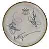 1960's folk trio, ''Peter, Paul and Mary'' signed Remo drumhead. Peter signs ''Peter Yarrow'', Paul pens ''Paul Stookey'' and Mary writes ''Mary Travers'' all in black ink. The trio boasted a near 50 year career, with Peter Yarrow and Paul Stookey opting for solo careers after Mary Travers' death in 2009. The unused drumhead measures 8'' in diameter. In near fine condition, with some light surface marks.