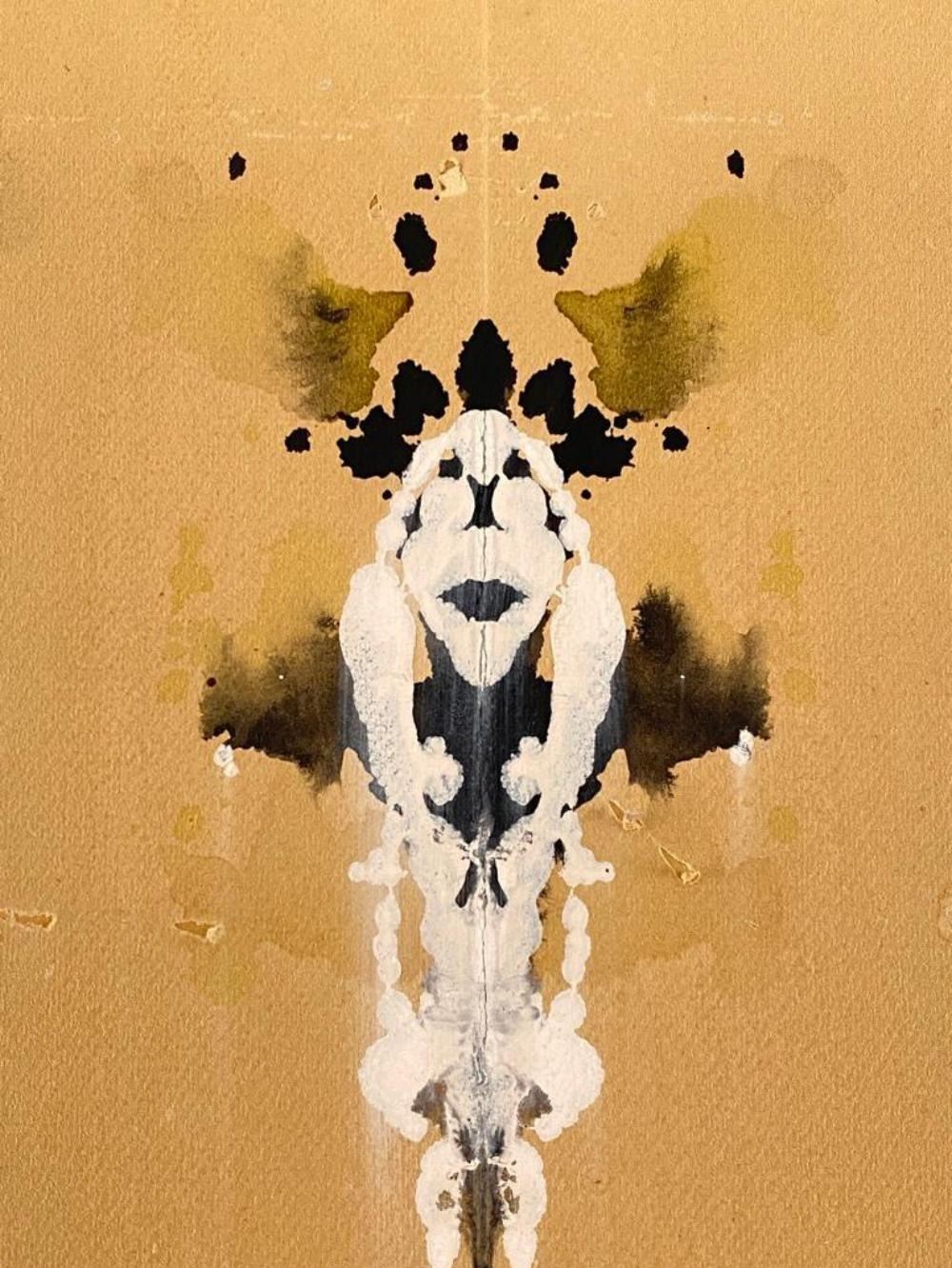 A Rare and Important Modernist Abstract Mirrored Painting On Paper, Mounted on a Ceramic Tile. By Noted California Mid Century Modern Design Group Peter Pepper Products. Marked Palos Verdes Estates California. Approximately 28.9375H x 7.4375W x .3125D in.