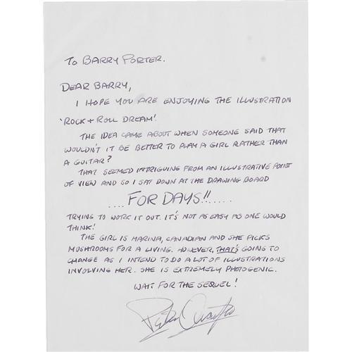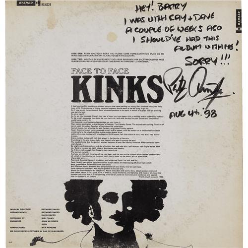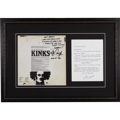 <B>Kinks' Peter Quaife Signed Letter and Kinks Album Cover.</B></I> A one-page letter handwritten and signed by Kinks bassist Peter Quaife in blue ink, matted and framed along with a <I>Face to Face</B></I> album cover inscribed and signed by him in black marker, to an overall size of 29" x 20". The letter is in Excellent condition and the album cover is in Fine to Very FIne condition with mild to moderate tanning and soiling.<BR><BR><b>Shipping:</b> Framed - with Glass, Medium (<a target="_blank" href="http://www.heritageauctions.com/common/shipping.php">view shipping information</a>)