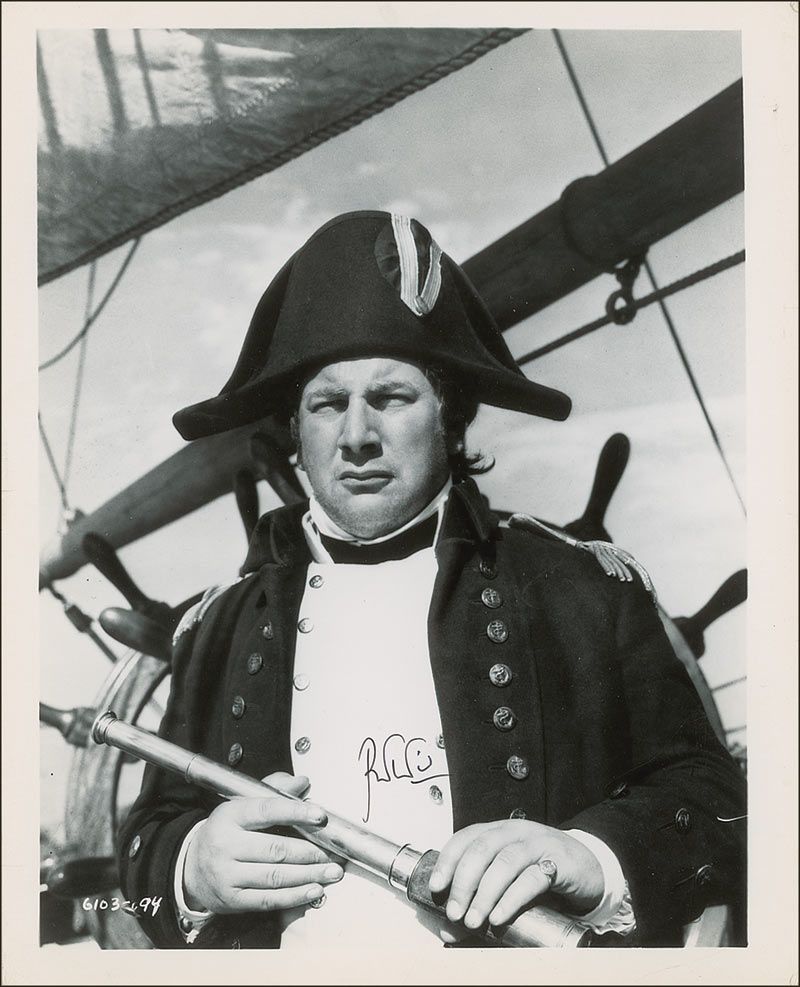 Two 8 x 10 glossy publicity photos of Ustinov from Billy Budd, each signed in his unique hand in ink. In fine condition, with light creasing and toning.