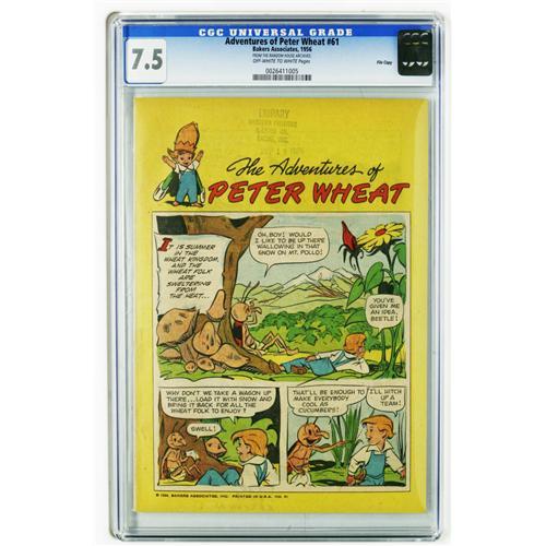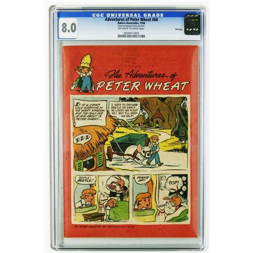 <B>Peter Wheat File Copies CGC Group (Bakers Associates, 1950-56).</B></I> All issues in this group of promotional comics have off-white to white pages. Included here are #33 (Walt Kelly art, CGC 9.0; census 4/06: 2 in 9.0, 6 higher), #60 (CGC 8.0; 1 in 8.0, 1 higher), #61 (CGC 7.5; 1 in 7.5, 1 higher), #62 (CGC 6.5; 1 in 6.5, 1 higher), and #63 (CGC 7.0; 2 in 7.0, none higher). Approximate Overstreet value for group = $250. <I>From the Random House Archives.</B></I>