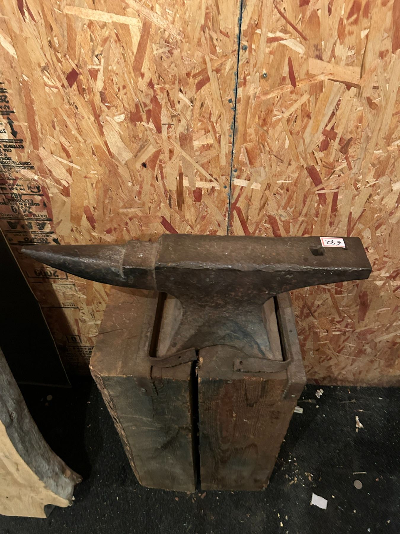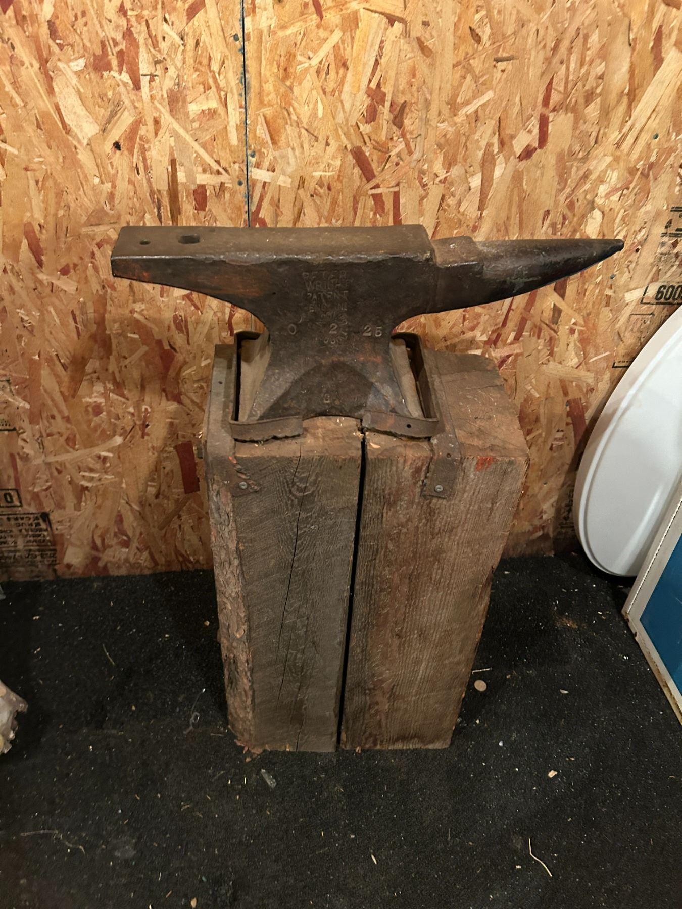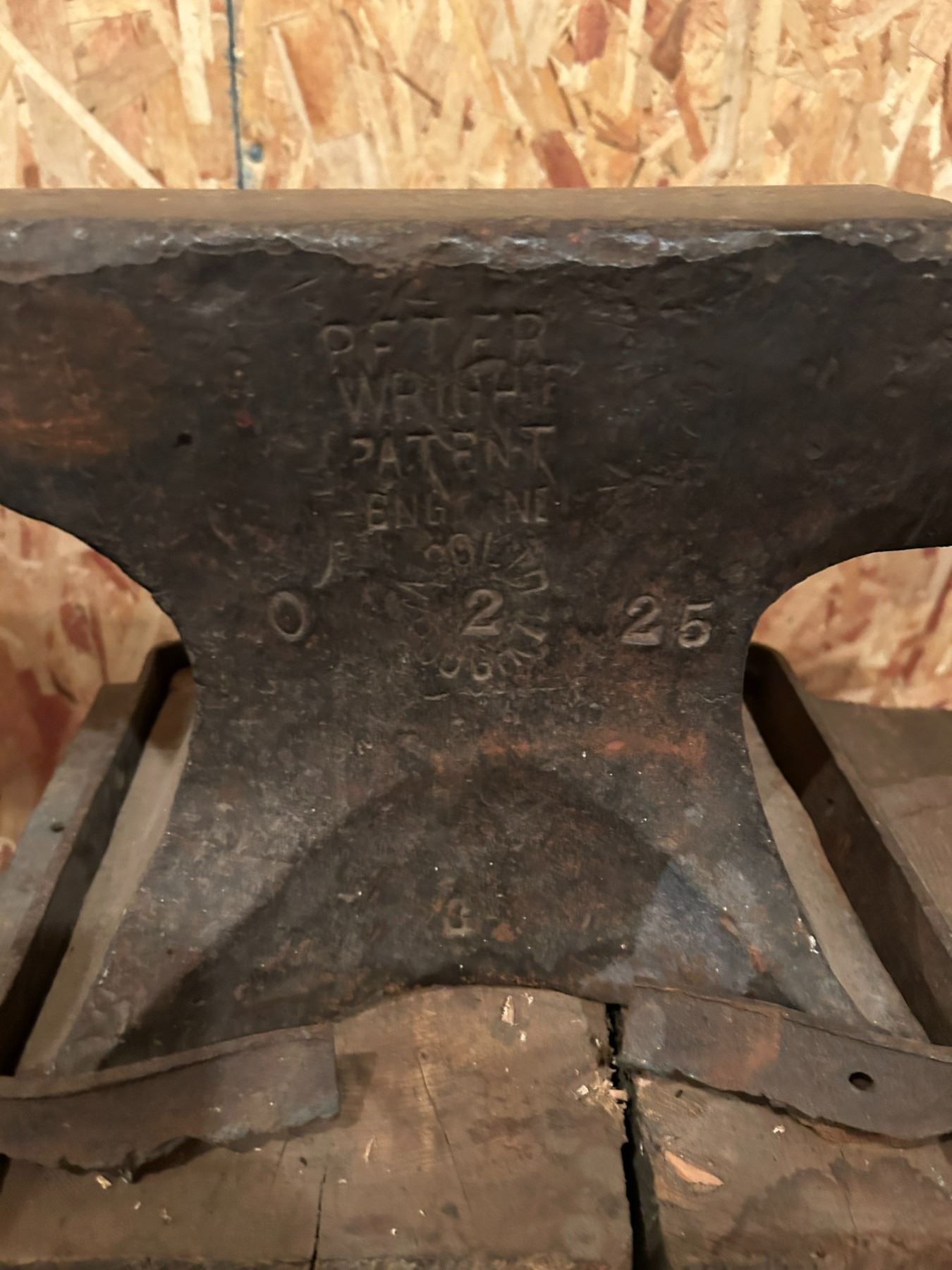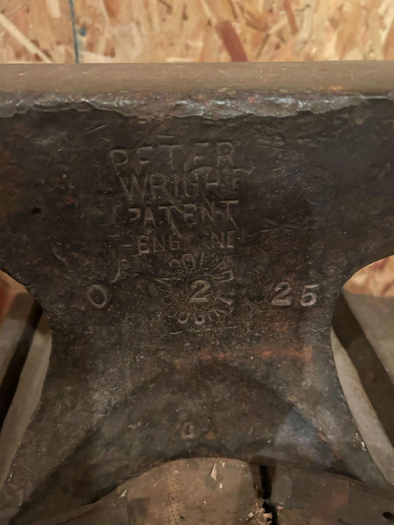 Peter Wright 90lb anvil - 1925, Made in England, with wooden block stand