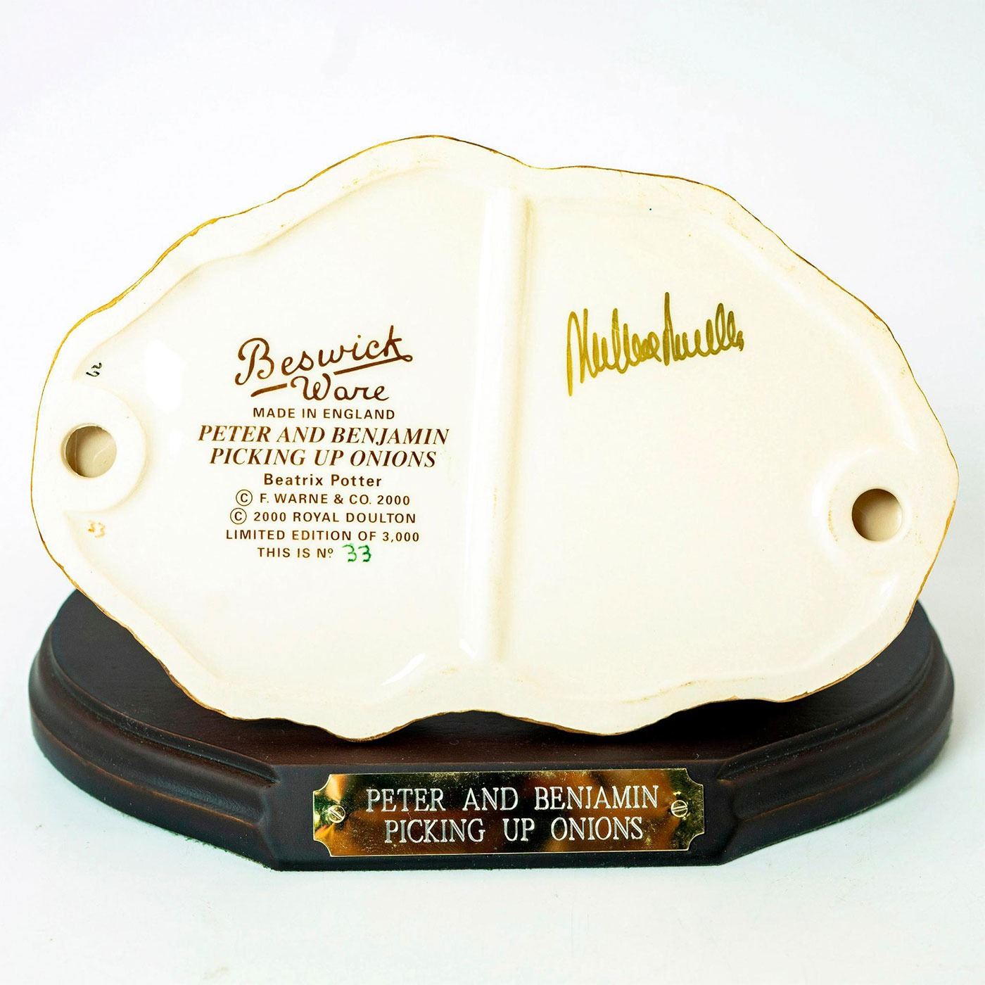 Beswick Backstamp. Peter: Pale blue jacket, Benjamin: Brown jacket. Limited edition, with display base. Signed by Michael Doulton.