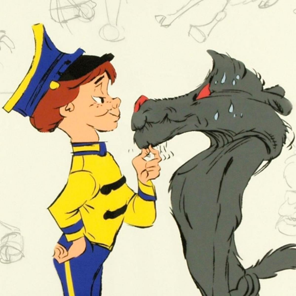 Peter and the Wolf: Character Sketches by Chuck Jones (1912-2002). Own this amazing piece based on the original line image hand drawn and hand-inked on paper by Chuck Jones! "Peter and the Wolf: Character Sketches" is a sold out limited edition animation cel with hand painted coloring on sericel outline, numbered and hand signed by Chuck Jones (1912-2002). Includes Certificate of Authenticity! Measures approx. 13.5" x 16.5".