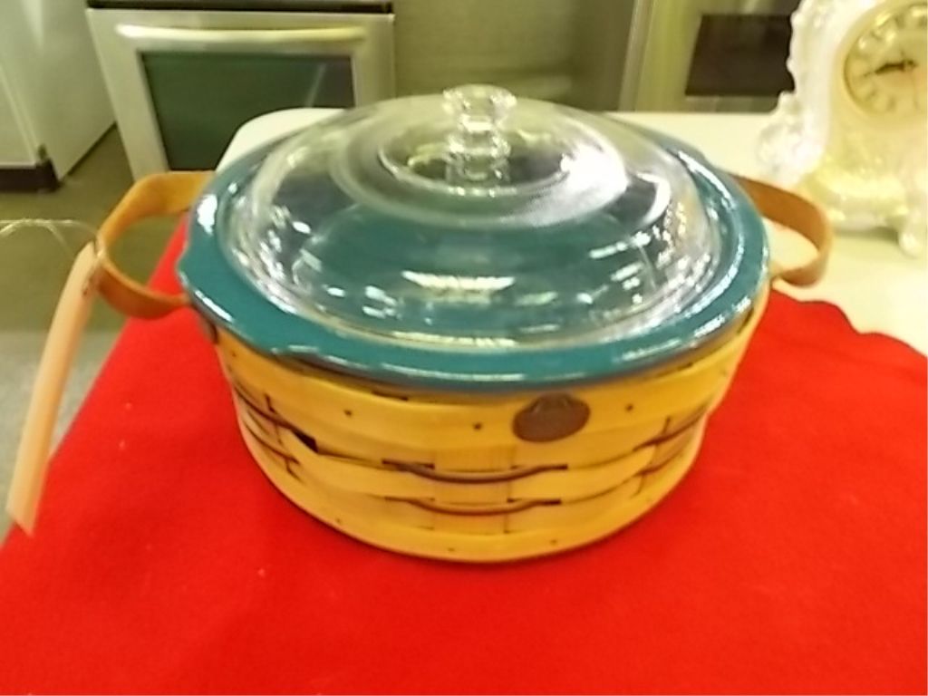 Peterboro Casserole Dish in Decorated Basket with lazy susan