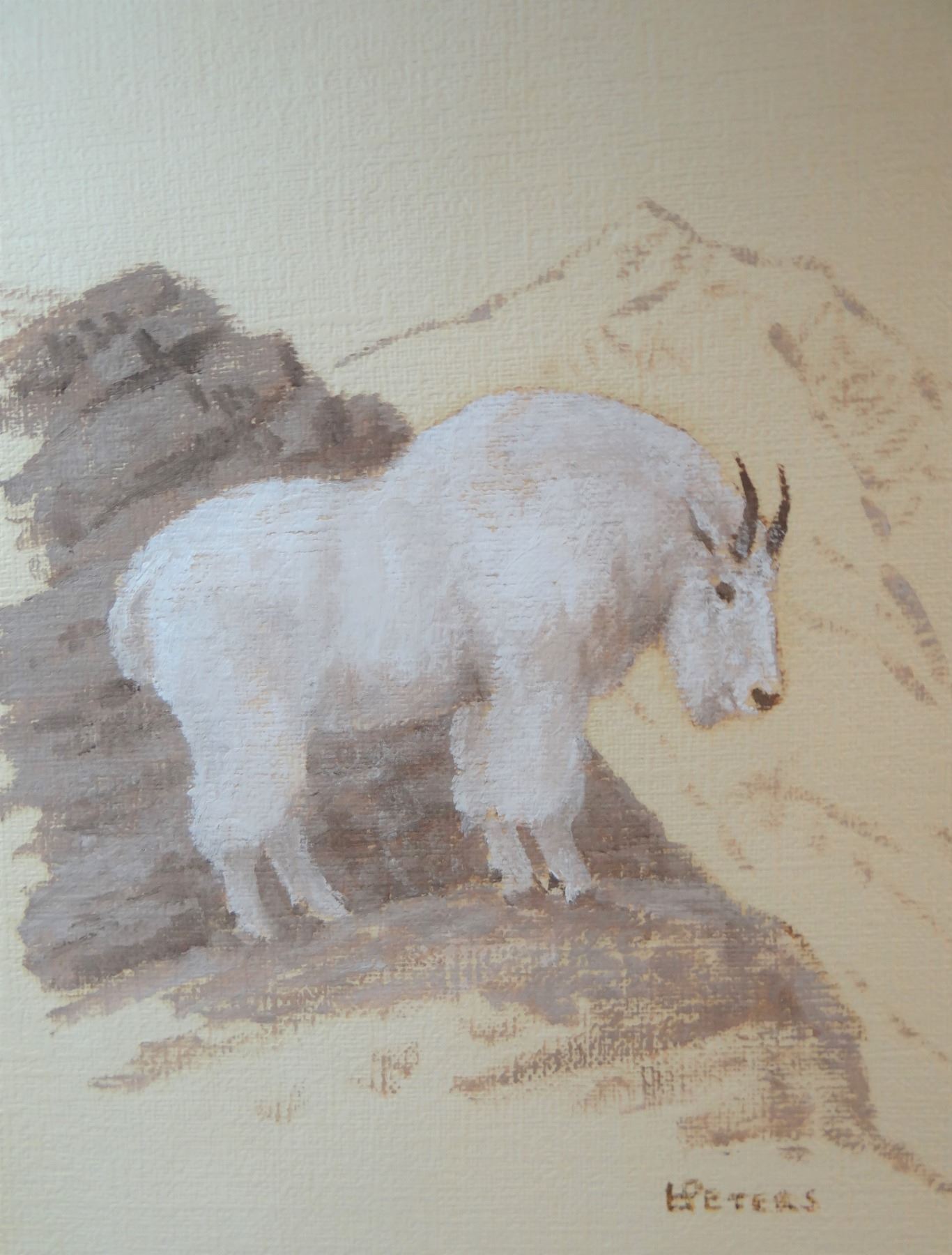 Peters, Les, oil on paper, Glacier Mountain Goat, 9" x 7"