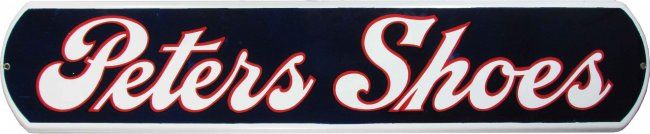 Peters Shoe Porcelain Sign. Minor edge chips otherwise near mint condition. 39 X 8 inches.