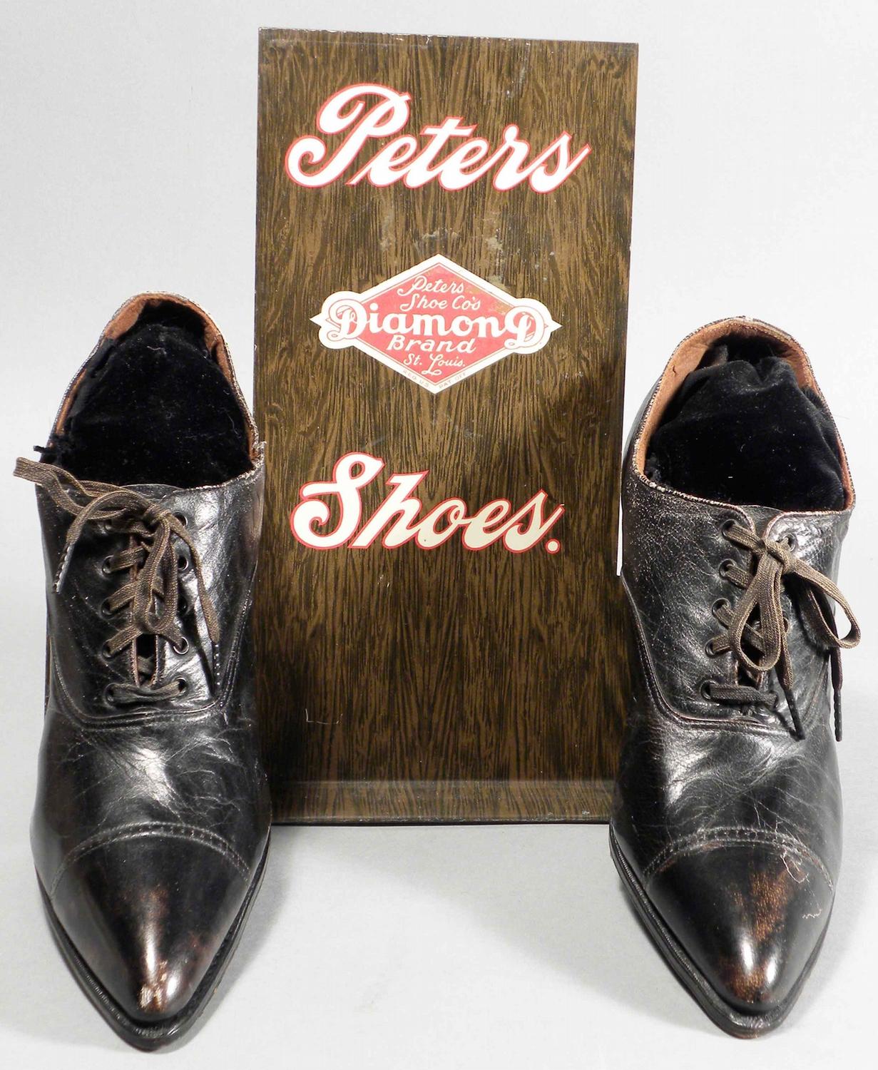 Peters Shoes Diamond Brand Die Cut Tin Store Display with early ladies shoes. Excellent condition. 10 X 9 1/2 inches. Starting bid $100