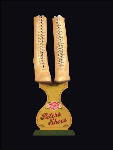 Peters Shoes Tin Store Display comes with a pr of lace up boots. Excellent condition. 7 1/2 X 9 1/2 inches.