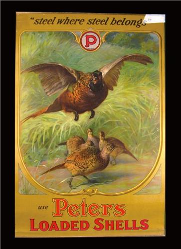 Peters Shot Shell Poster, depicting pheasants. Original bands top and bottom, Matted and framed. Some minor creases on edges otherwise excellent original condition. Image 20 X 30 inches .