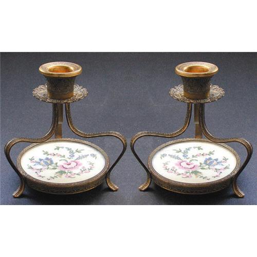 <tr><td>Title:Petit Point Embroidered Brass Candlesticks</td></tr>