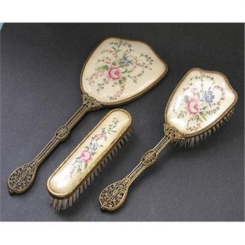 <tr><td>Title:Petit Point Embroidered Brass Mirror Brush Set</td></tr>