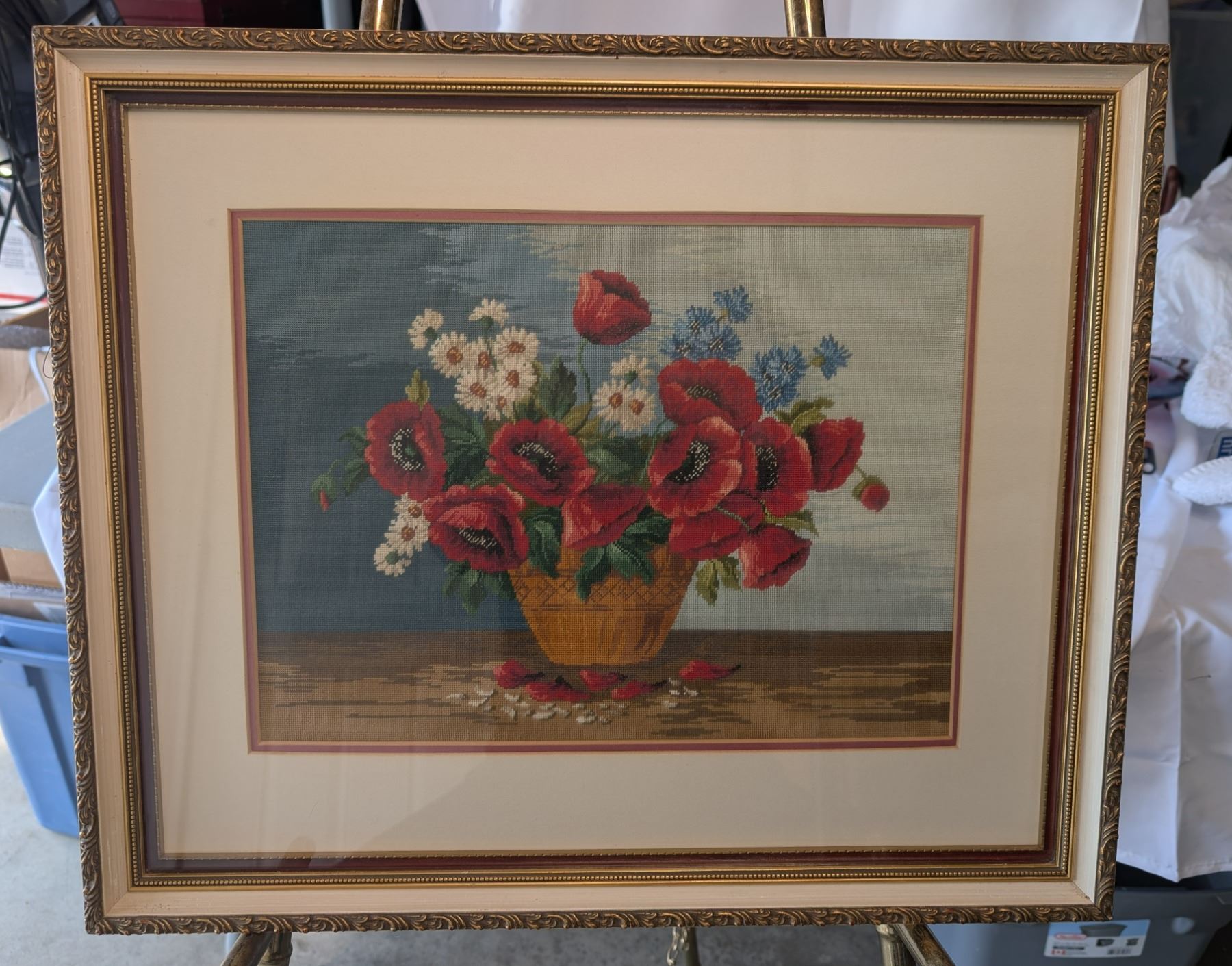 Petit Point Poppies from Calgary Exhibition Fort MacLeod Framed 21"x17"