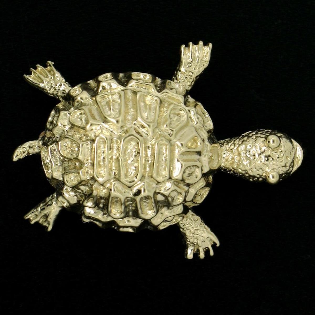 Petite 14K Yellow Gold Amazing Highly Detailed Textured Turtle Brooch Pin
