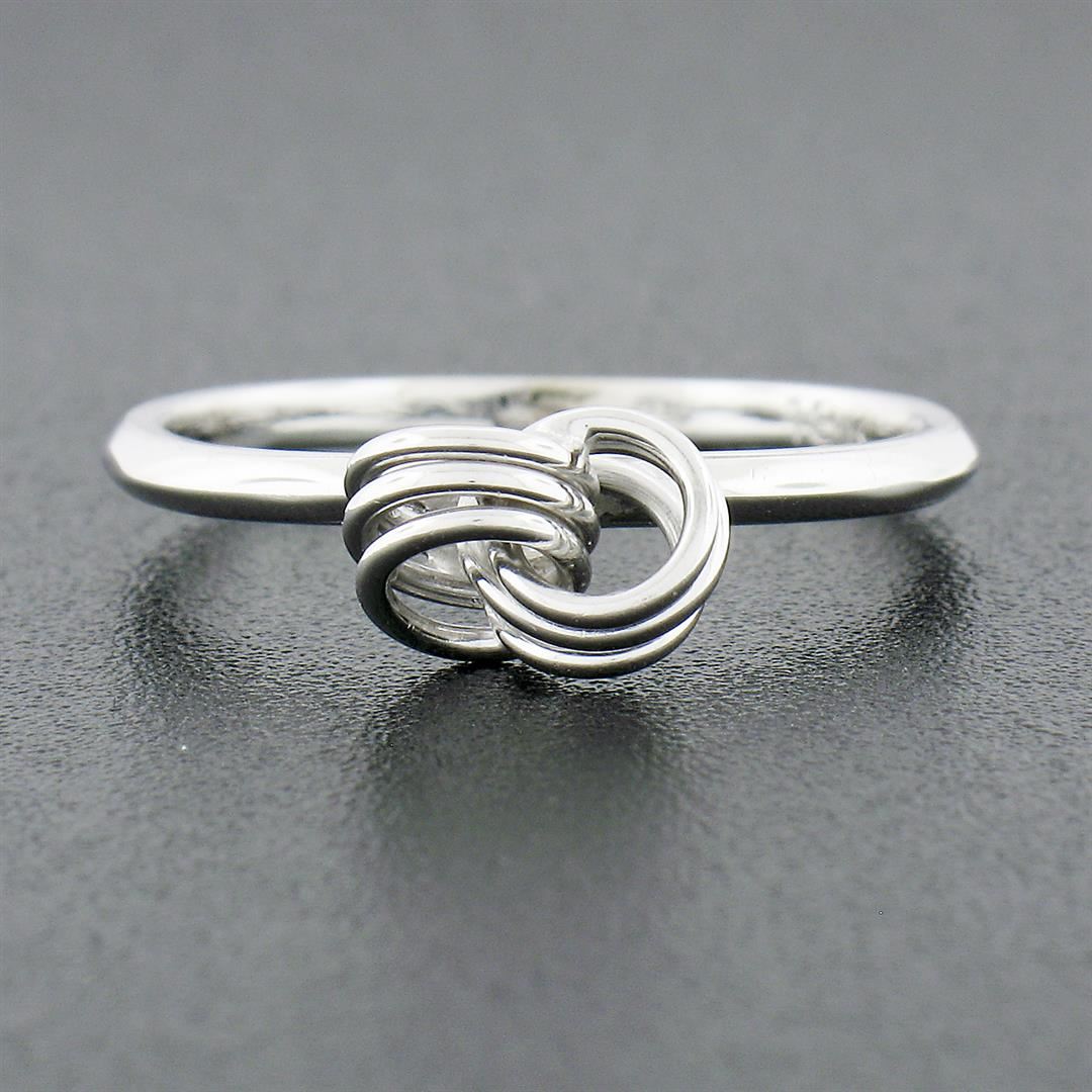 Petite 18K White Gold Simple Polished Interlocking Triple Wire Open Knot Ring