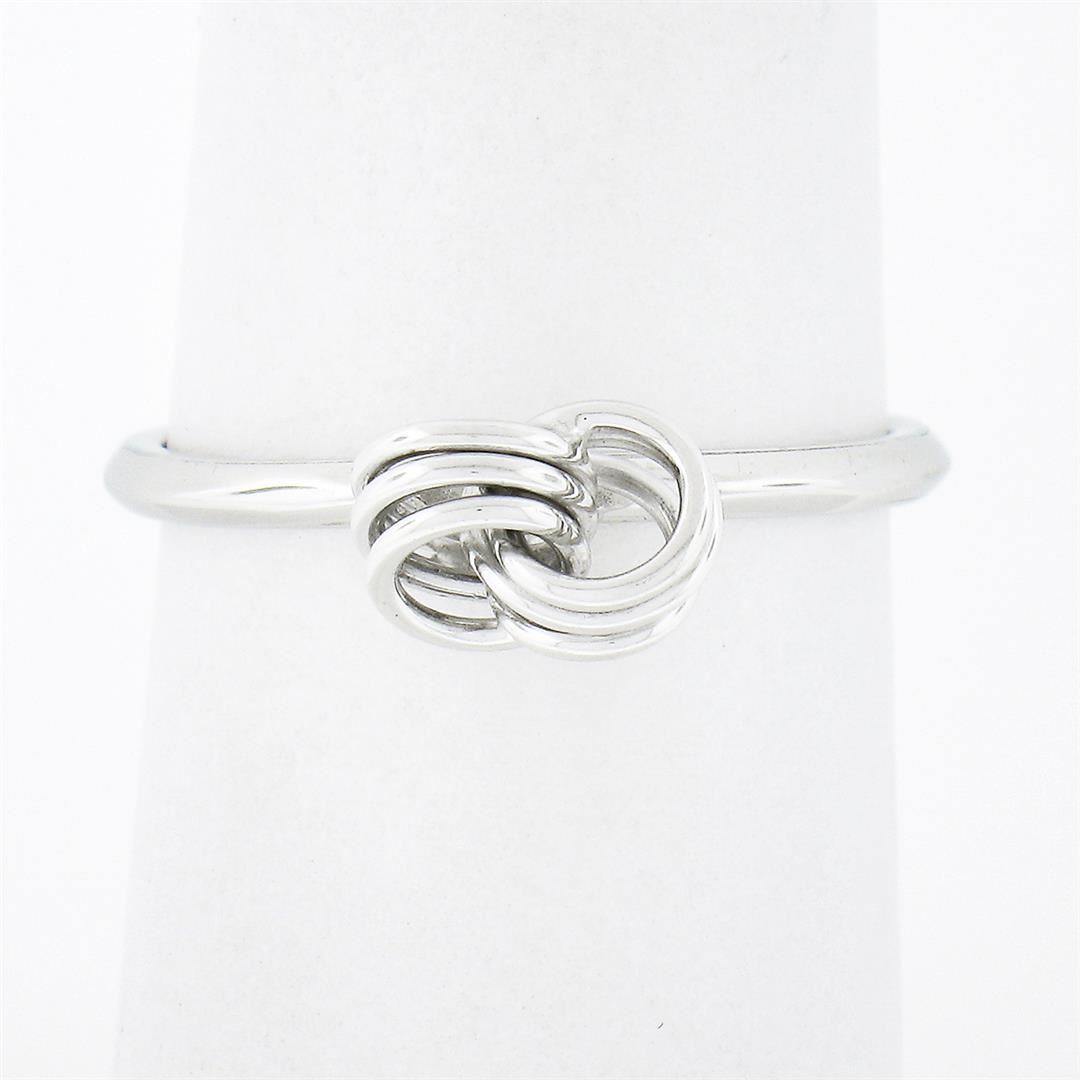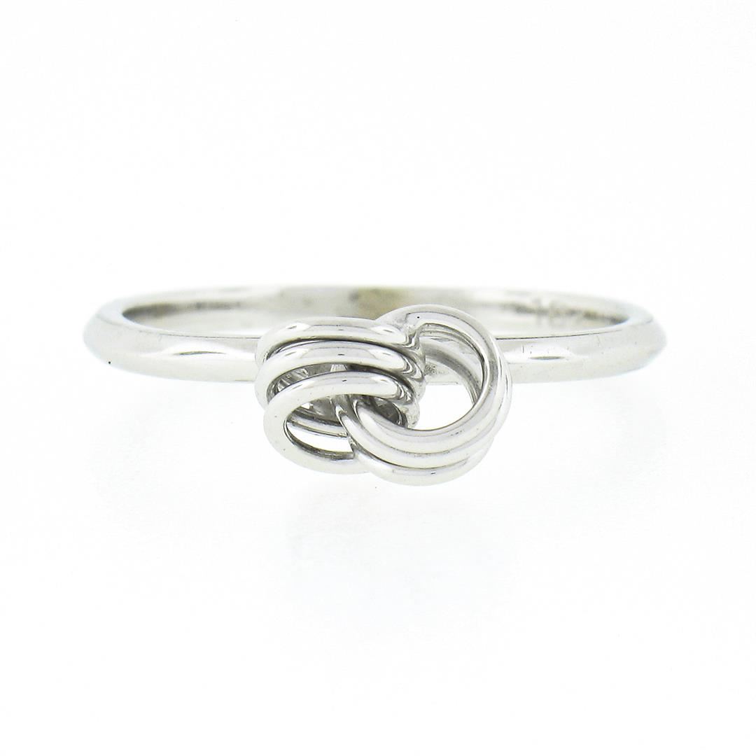 A solid 18k white gold knot ring. The ring is size 7.0, weighs a total of 2.10 grams, and measures 5.85mm wide.
