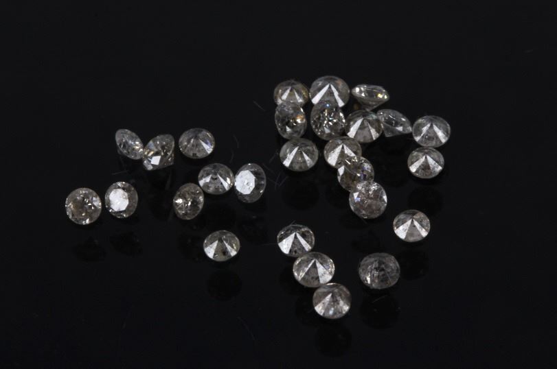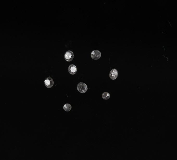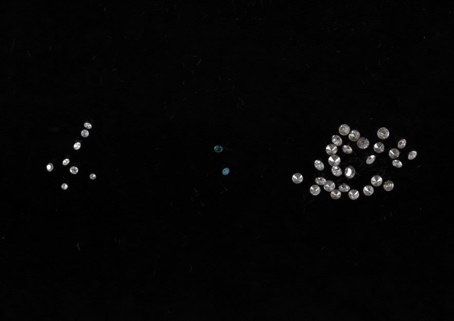 For your consideration is this collection of petite blue and white diamonds shows a variety of different sizes cut in the round cut style. The light reflects on these beautifully faceted, these diamonds shows professional craftsmanship. There are thirty diamonds in total with twenty seven round cut diamonds, eight white diamonds, and two blue diamonds making up this collection. The condition of this collection of fine blue and white diamonds is good with extravagant color and reflective effect to these petite diamonds. The measurements of this of these diamonds range from 1.04 x .97 to 2.12 x 1.32.
