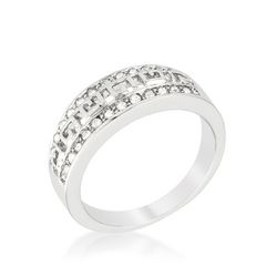 Add some feminine sparkle with this petite silver tone ring that comes fashioned with shimmering crystals. Our genuine rhodium finish is achieved using an electroplating process that coats the item with heavy layers of rhodium a close cousin to platinum which gives our jewelry a platinum luster.Base Metal: Lead Free Alloy (Brass)Style: , Setting Type: ProngsMaterials: , Stone Cut: RoundCarat Weight: .26 (ct)Color: , Plating Color: Silvertone FinishChain Clasp: 6.00Ring Band Width: 3 mmBracelet Size: 22 mm L x 7 mm W x 3 mm HStone Size: 1.3 mmType: Ring