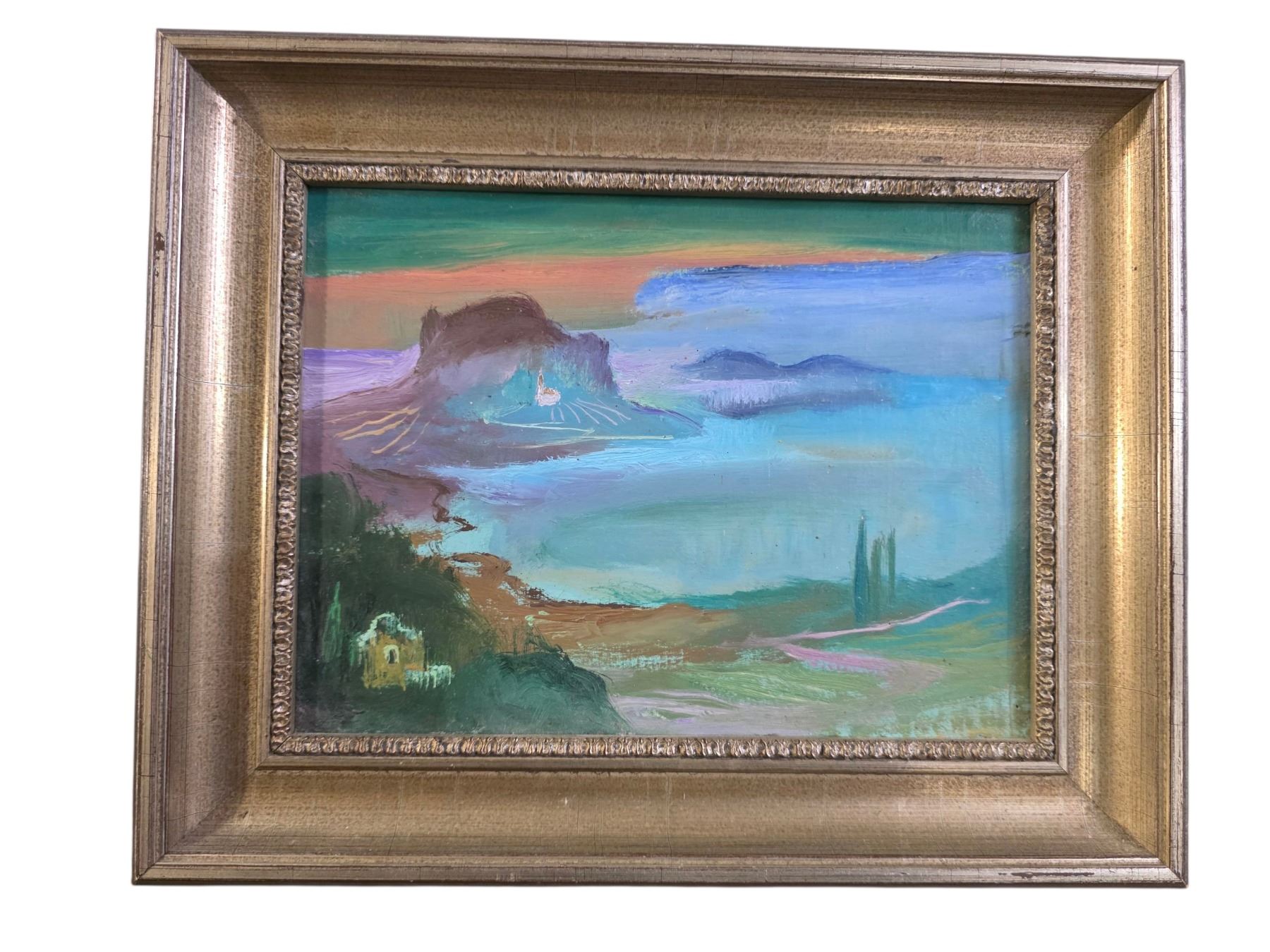 Petite Original Oil Painting of an Ocean Scape - Unsigned - 12" x 10" Framed