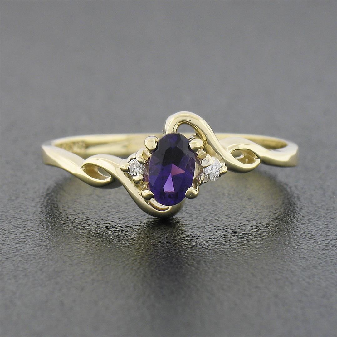 Petite Solid 10k Yellow Gold Oval Amethyst Solitaire Diamond 3 Three Stone Ring