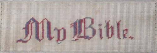 Petitpoint Needlework Bookmark, framed under glass, "My Bible," 6" x 2" (image size)