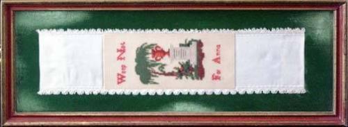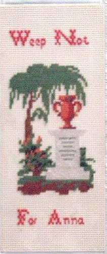 Petitpoint Needlework Piece, framed under glass, "Weep Not For Anna," 5" x 2.5" (image size)