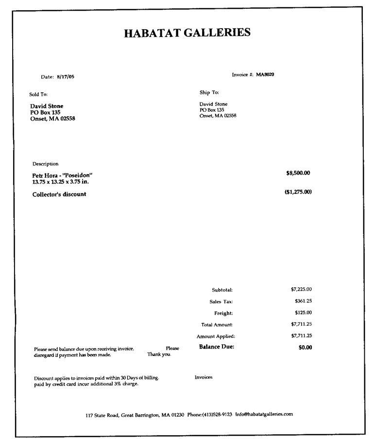 11. All purchases are subject to applicable Florida sales tax of 7% unless the Florida Certificate of Resale tax form is fully and completely filled out and received prior to time of purchase. Resale tax numbers from other states are accepted. International buyers are responsible for tariffs, taxes, or assessments of shipped items to the buyer's country.