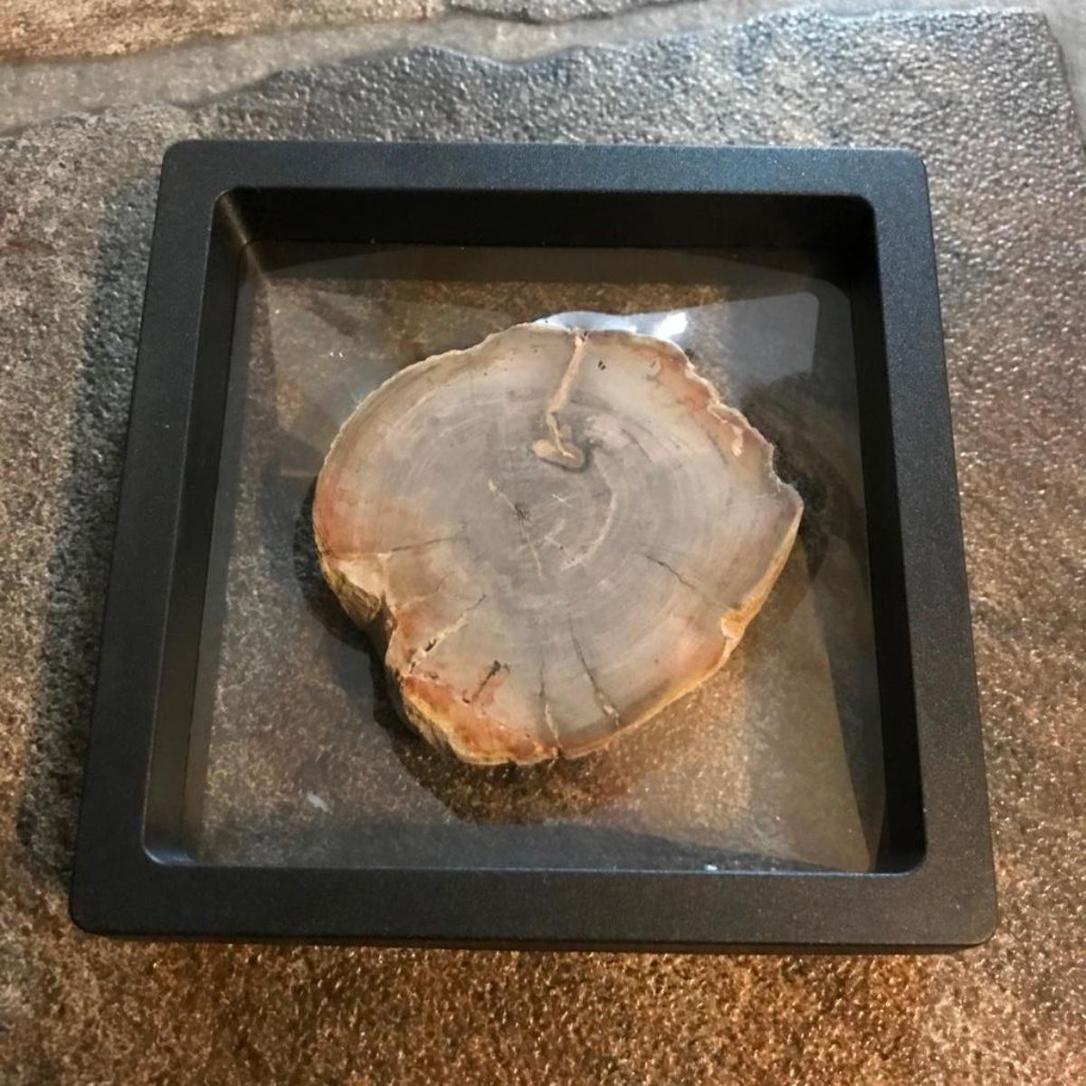 Small lapidary quality, polished petrified wood slab ( Araucaria - conifer )Â from the Triassic period. Madagascar origin. Shows great detail, looking as it did when it was still part of a 'living' tree. 2" D in 3 1/2" square display case. Â