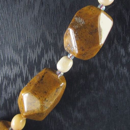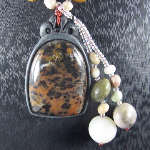 *Stone Name Petrified Wood Opal *Stone Overall Dimension for each bead 50x32x11 mm (1.969x1.260x0.433 inch ) *Weight 510 ct/ 102 g/ 3.597948 oz*Handcrafted knot chainOther Stones used in this Necklace Petrified Wood Opal*Center Stone Properties *Locality unknown *Appearance semi-transparent to opaque *Color Black red pink and yellow *Mohs Hardness 6.5 *Source Natural *Treatments None *Drilled YES diameter 2.5/36-3/36 inch *Other Names unknown~~~~~~~~~(+) Each step of our Lapidary work is under tight quality control . With the best pattern-color combination possible in mind the initial cut was done by experienced lapidary ... The last-step diamond polishing makes the surface of each bead/cab mirror-like glossy that meet the highest standard possible. Finally only those met all quality requirements are selected.