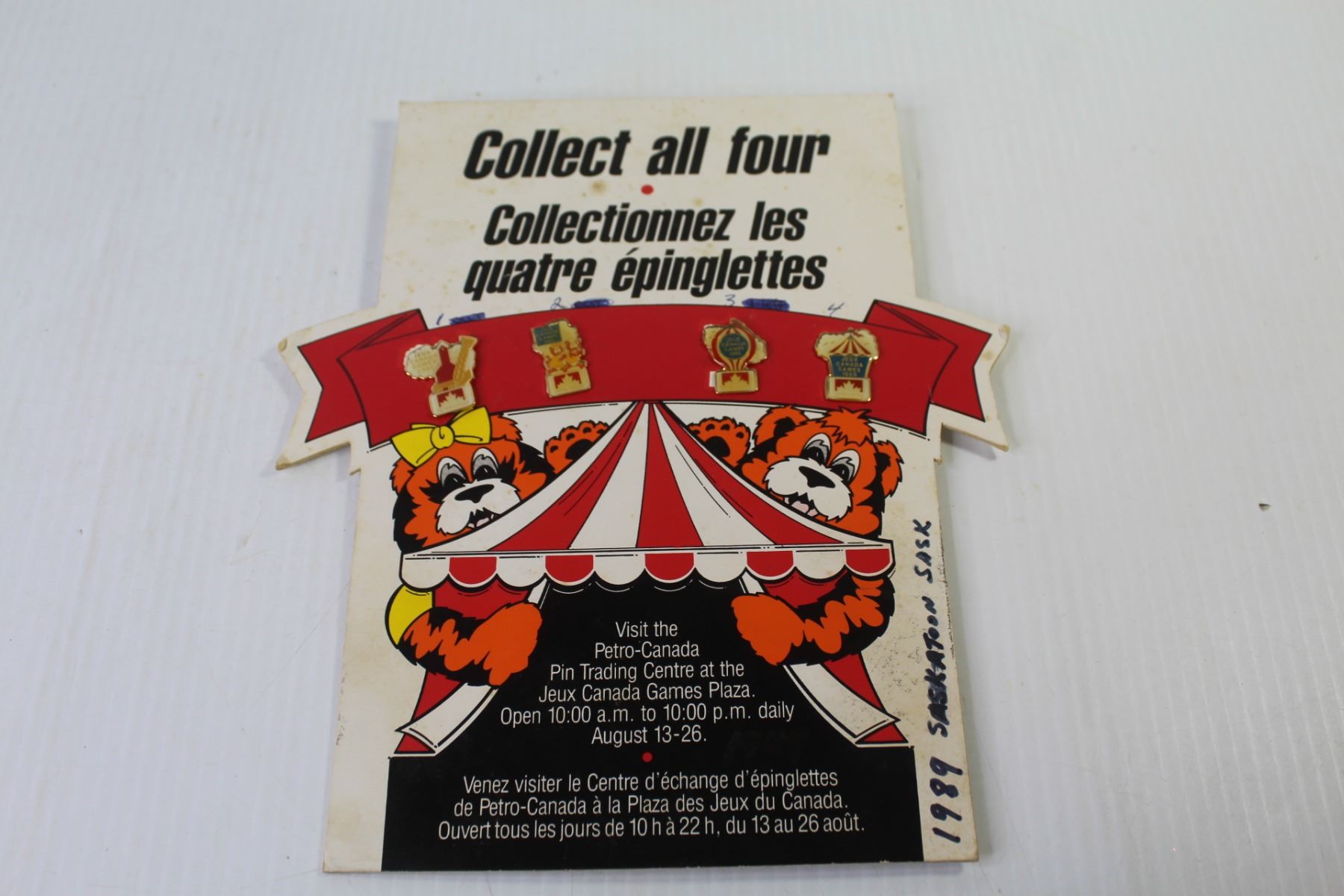 Petro Canada Collector Pins on Display Card, Air Facilities Map, Shell USA Travel Guide, Gulf "Play