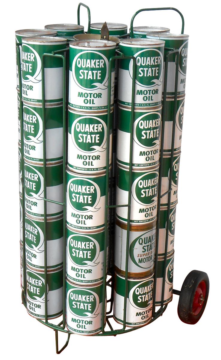 Petroliana, Quaker State Motor Oil cart w/40 NOS quarts of Quaker State oil, all in Exc cond, 33.5"H