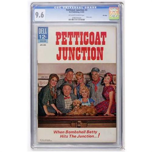 <B>Petticoat Junction #3 File Copy (Dell, 1965) CGC NM+ 9.6 Off-white to white pages.</B></I> Photo cover. Overstreet 2007 NM- 9.2 value = $70. CGC census 3/08: 1 in 9.6, none higher.<BR><BR><b>Shipping:</b> Comics - Slabbed (certified) (<a target="_blank" href="http://www.heritageauctions.com/common/shipping.php">view shipping information</a>)