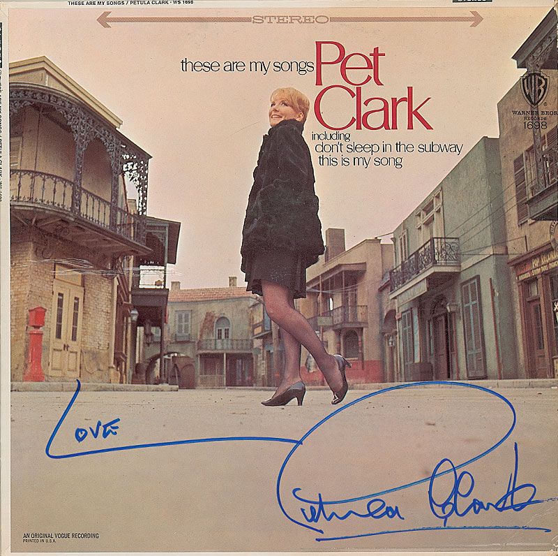 Two albums, These Are My Songs and Greatest Hits, each signed on the front cover in blue felt tip, “Love, Petula Clark.” The records are included. In fine condition, with a couple scattered light edge and corner creases.
