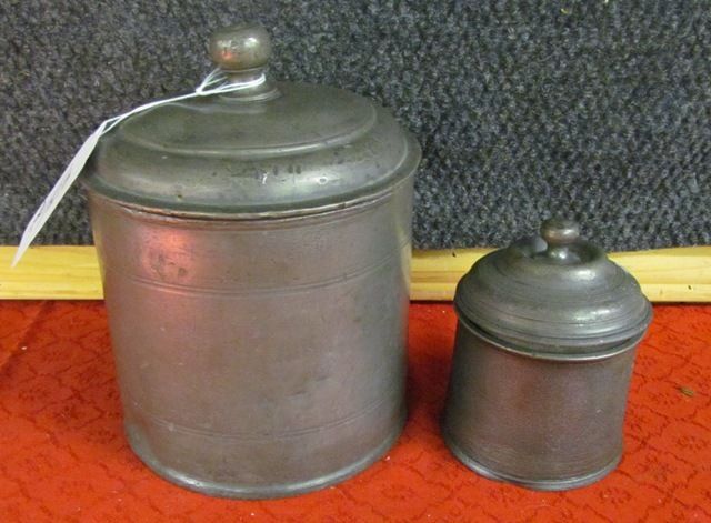 17th Century Heavy Pewter 2 piece Canister Set with Lids - unmarked - 8" t x 6" - 5" t x 4"